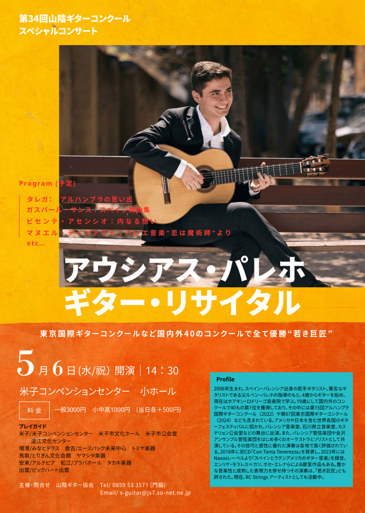 今年はいま話題のギターの超新星アウシアス・パレホによるリサイタルも開催されます!