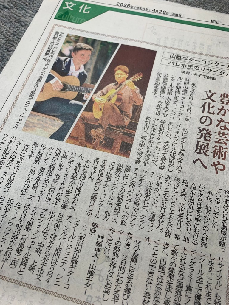 #山陰ギターコンクール #日本海新聞 #に掲載していただきましたありがとうございます
